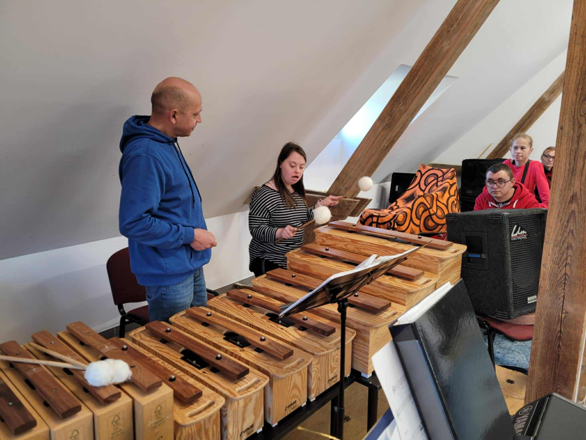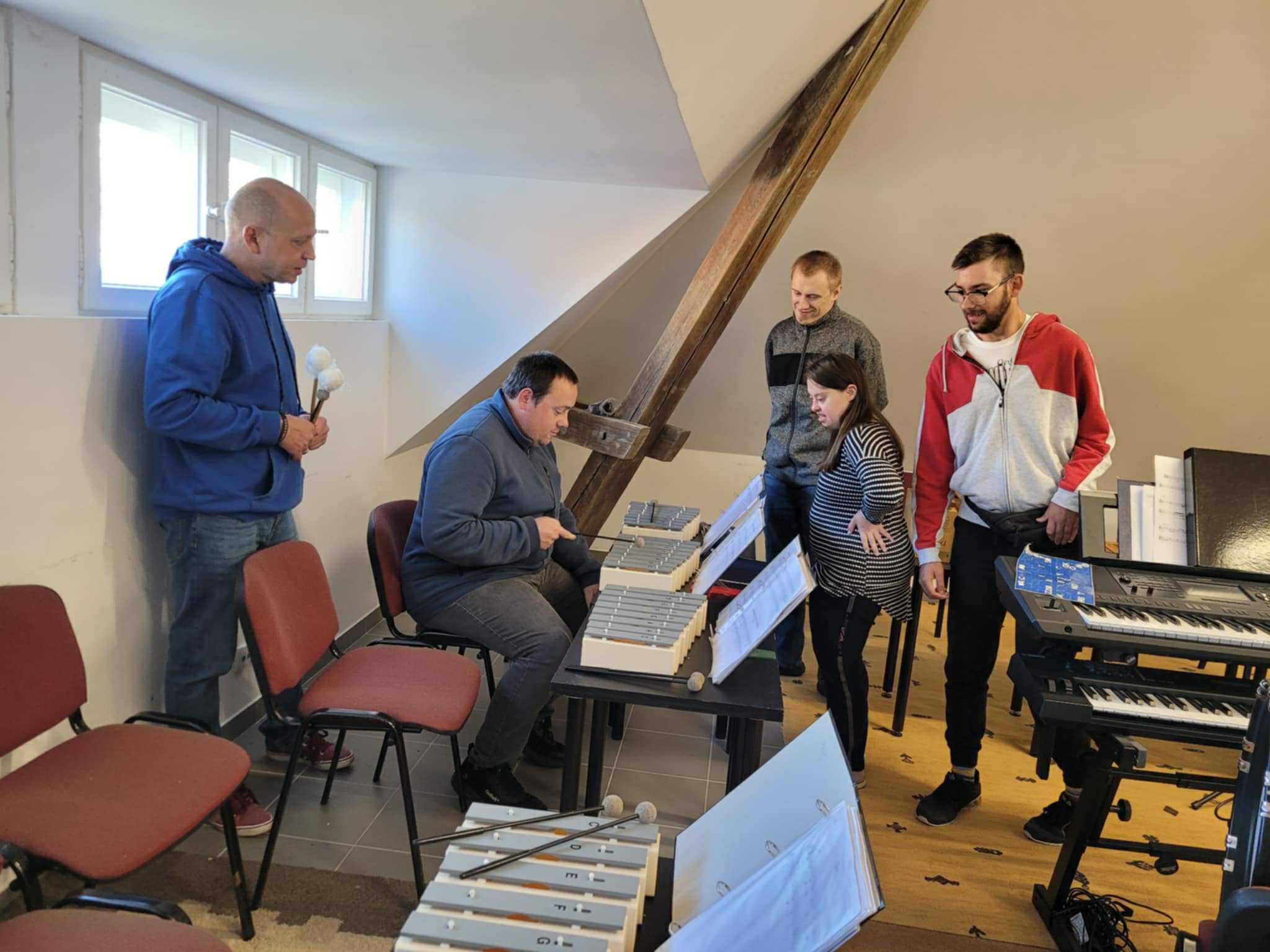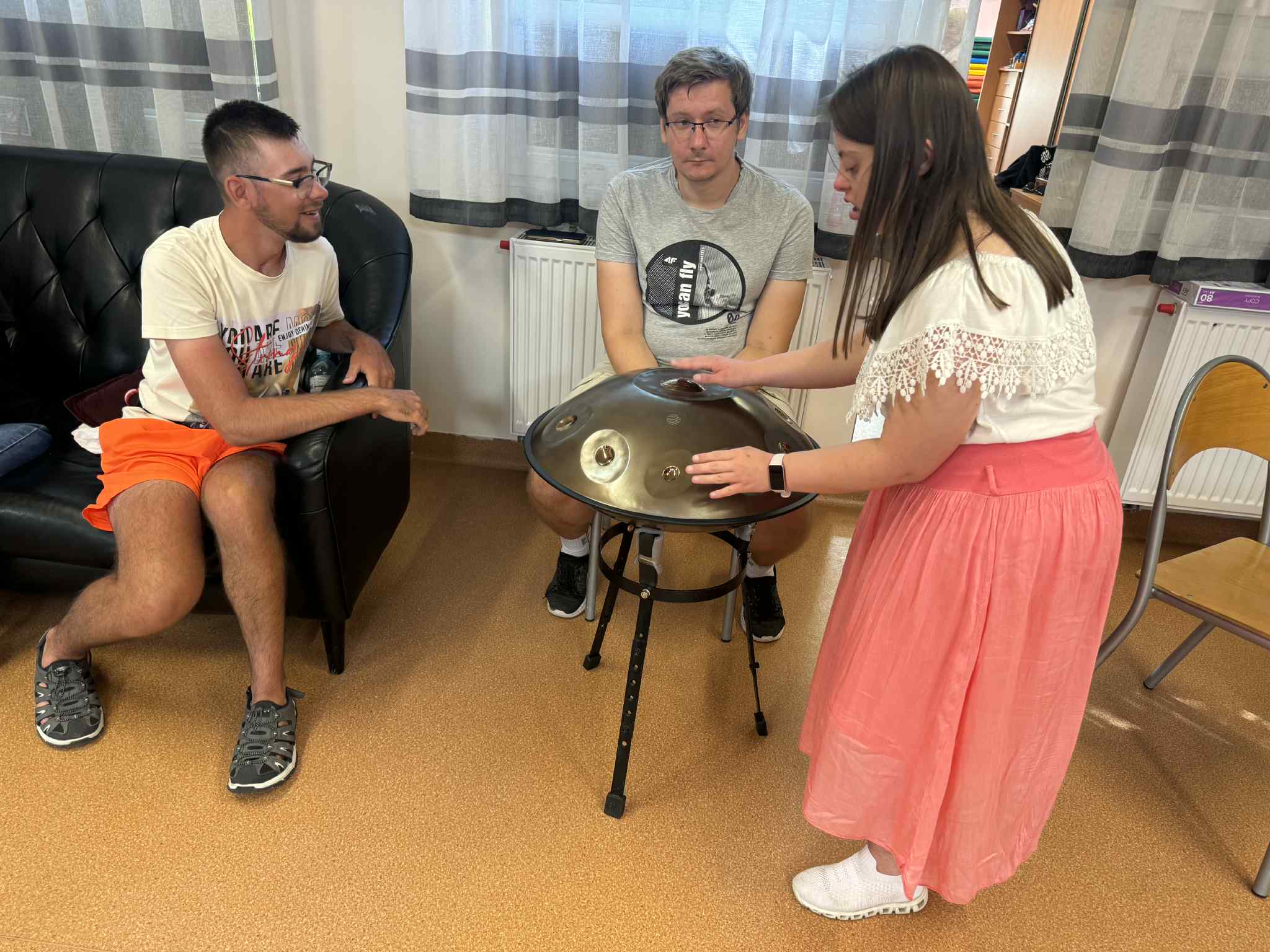 Podczas spotkania uczestnicy zanurzyli się w świat dźwięków, rytmów i melodii. Poprzez wspólne granie na instrumentach, słuchanie muzyki relaksacyjnej oraz pracę z dźwiękami natury mogli doświadczyć, jak wielką moc ma muzyka – zarówno w uspokajaniu emocji, jak i w pobudzaniu energii oraz kreatywności.